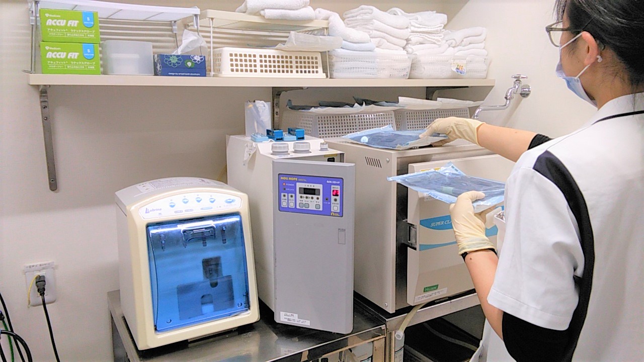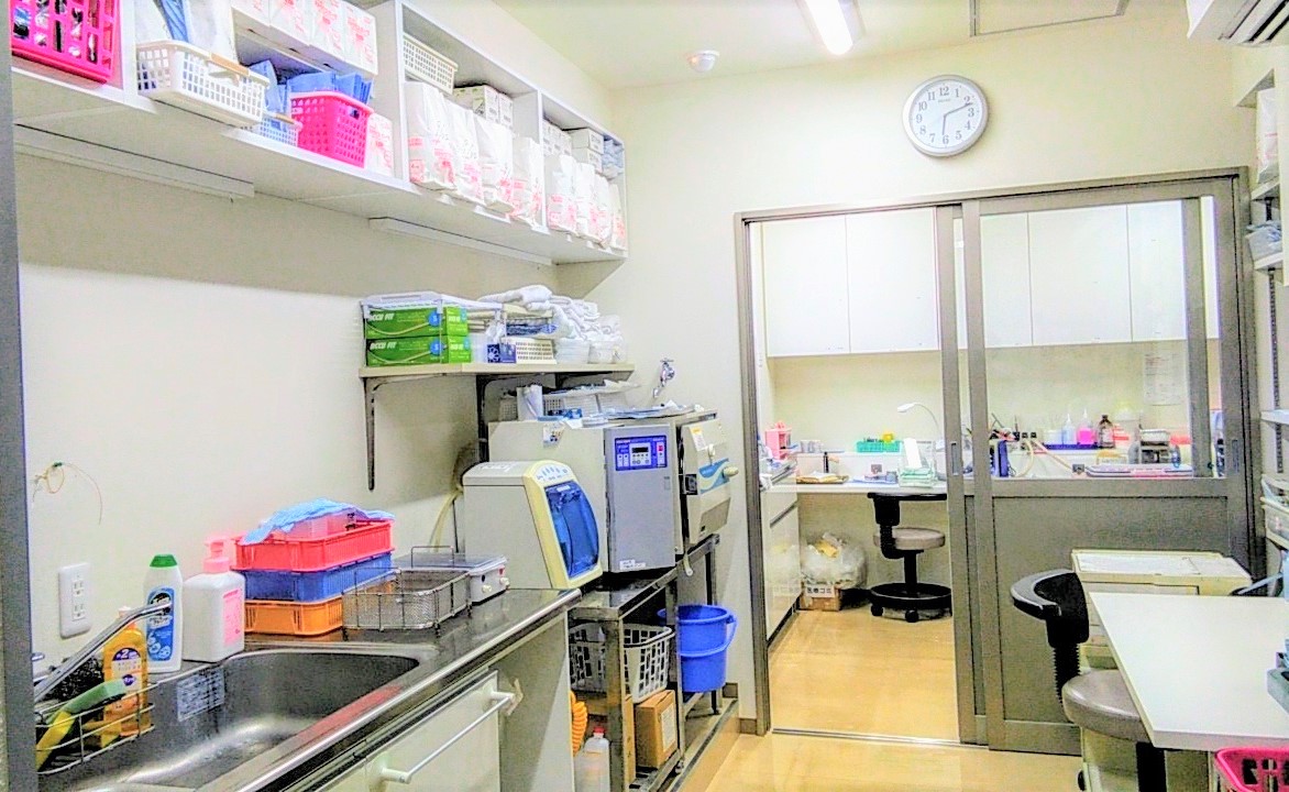 診療室の設備を一新致しました。より明るく開放的になりましたが、プライバシーは守られるレイアウトになっています。診療用の水も「中性電解水」を使用し衛生的な診療環境を整えています。